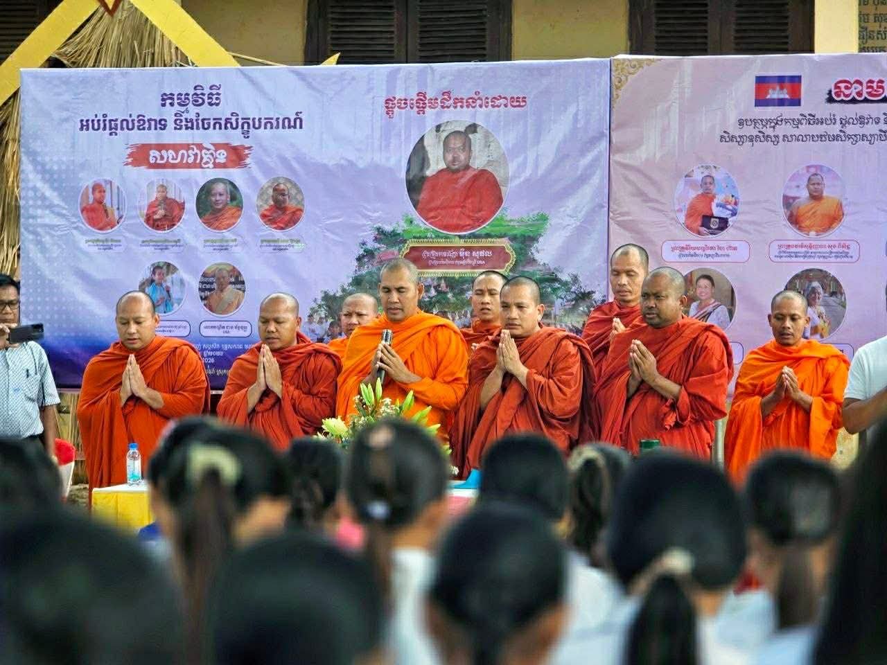 កាលពីថ្ងៃពុធ ទី៥ ខែកុម្ភះ ឆ្នាំ២០២៦ កន្លងមកនេះ ព្រះគ្រូចៅអធិការ សុមេធាវី សាយ ប៊ុនថុន តំណាងឲ្យកម្មវិធីសិក្សាវប្បធម៌ និង អក្សរសាស្រ្ដខ្មែរ និមន្ដនាំយក កុំព្យូទ័រ៧ គ្រឿង និង ម៉ាសុីនព្រីនមួយ អាយផេត៥ គ្រឿងចូលរួមក្នុងកម្មវិធីចែកសិក្ខូបករណ៍ជូនដល់សមណសិស្ស និង សិស្សានុសិស្សក្នុងសាលាស្សាបឹងវែង ខេត្តកំពង់ចាម។